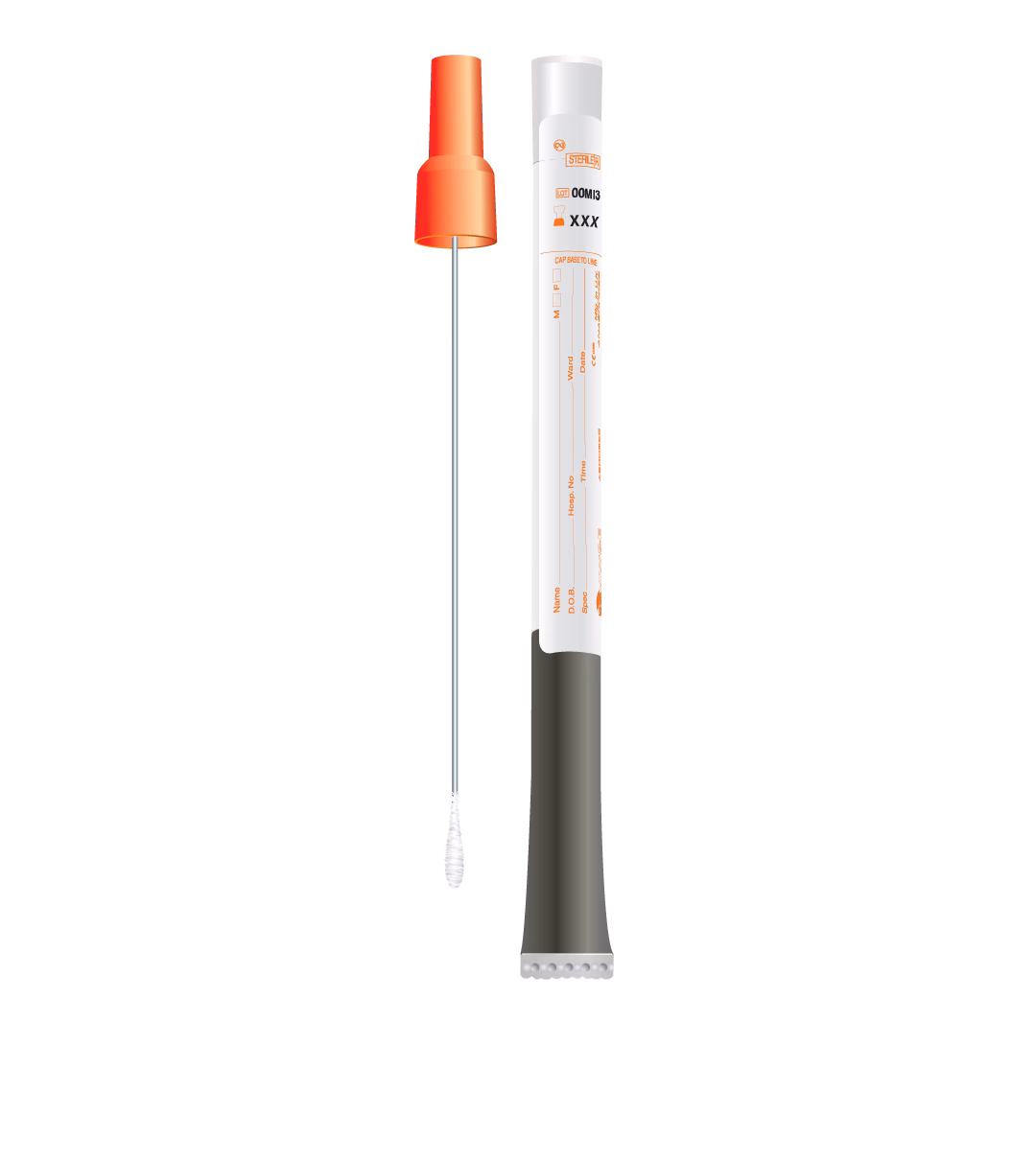 MW172C TRANSWAB® - Urethral / ENT Aluminum Wire Swab - Labelled Tube - Amies Charcoal Gel Medium Orange 15cm 125 24